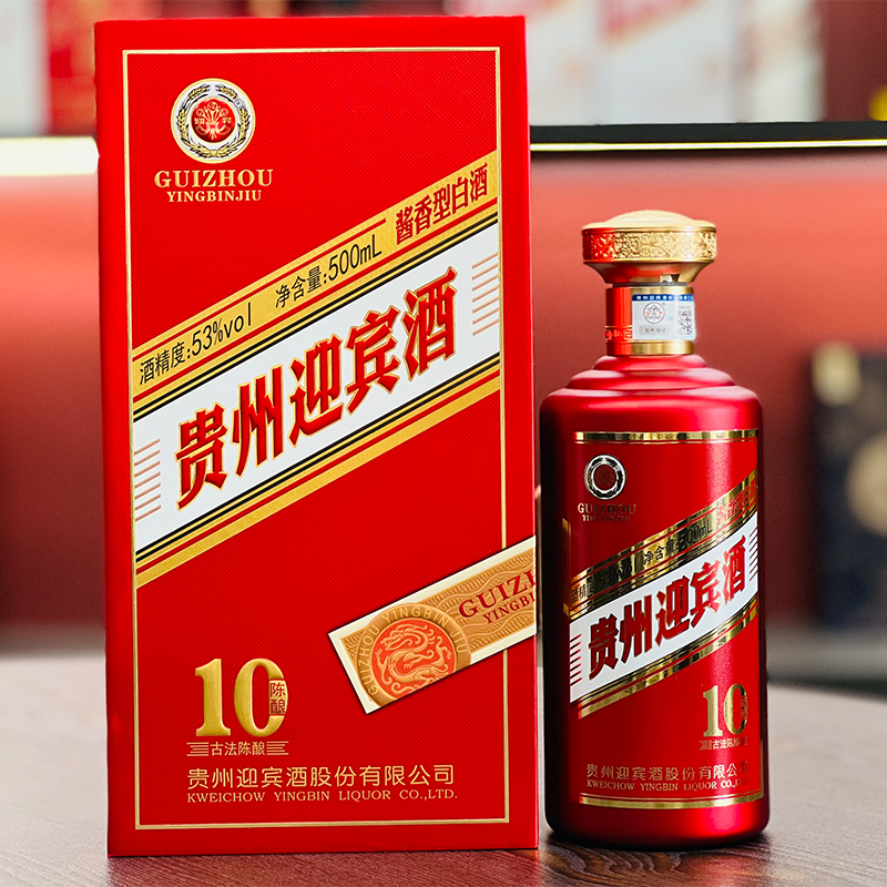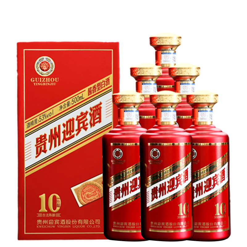 贵州迎宾陈酿10酒茅台镇 53度500ML礼盒整箱装湄酱香型白酒 500ml*6瓶 整箱装