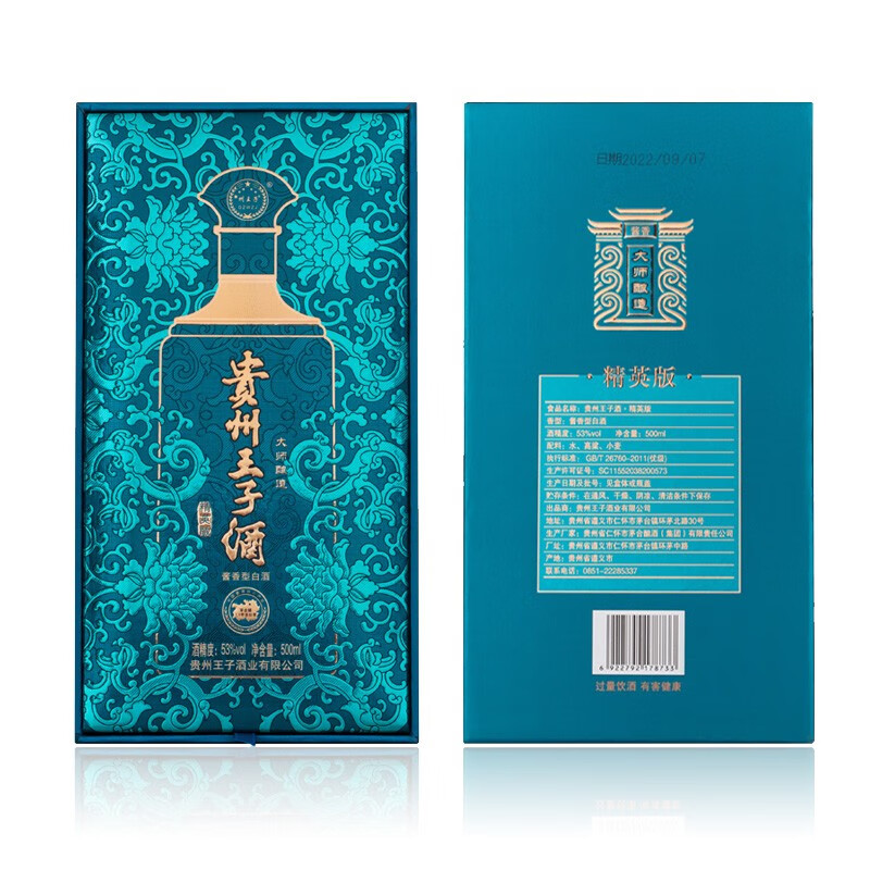 贵州王子酒 精英版 53度 酱香型 礼盒装 高度白酒整箱 500ml*6瓶 整箱