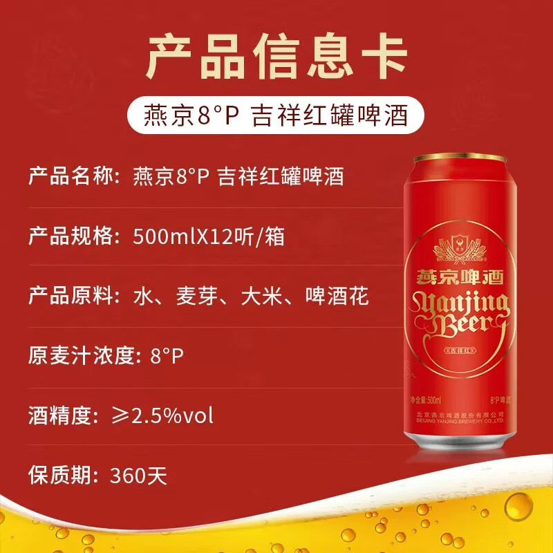 燕京啤酒 吉祥红罐500ml*12听 8度清爽型 整箱 (就近分仓发货产品,下单前咨询客服确认)