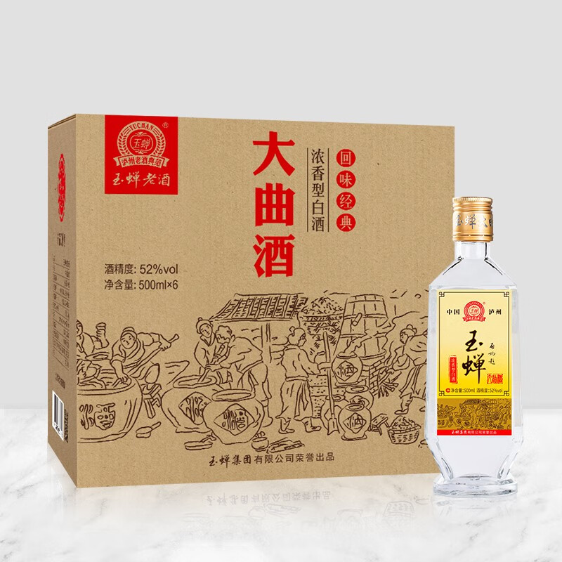 玉蝉老酒 大曲 光瓶 52度 浓香型白酒 高粱酒固态发酵白酒 500ml*6瓶 整箱