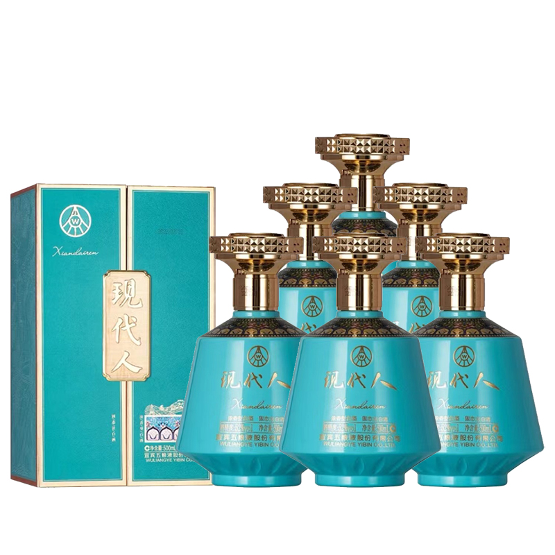 五粮液(WULIANGYE)宜宾五粮液股份出品 现代人敬未来 蓝 52度 浓香型白酒 500ml*6瓶 整箱