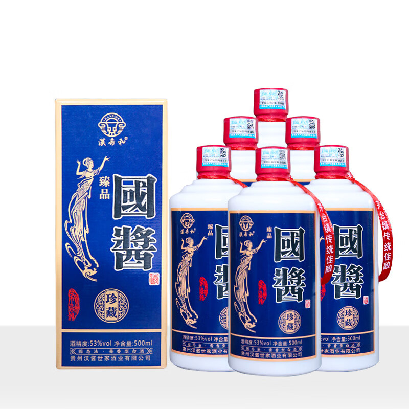 中国贵州茅台镇 国酱 珍藏蓝 53度 酱香型白酒 纯粮酿造 500ml*6瓶 整箱
