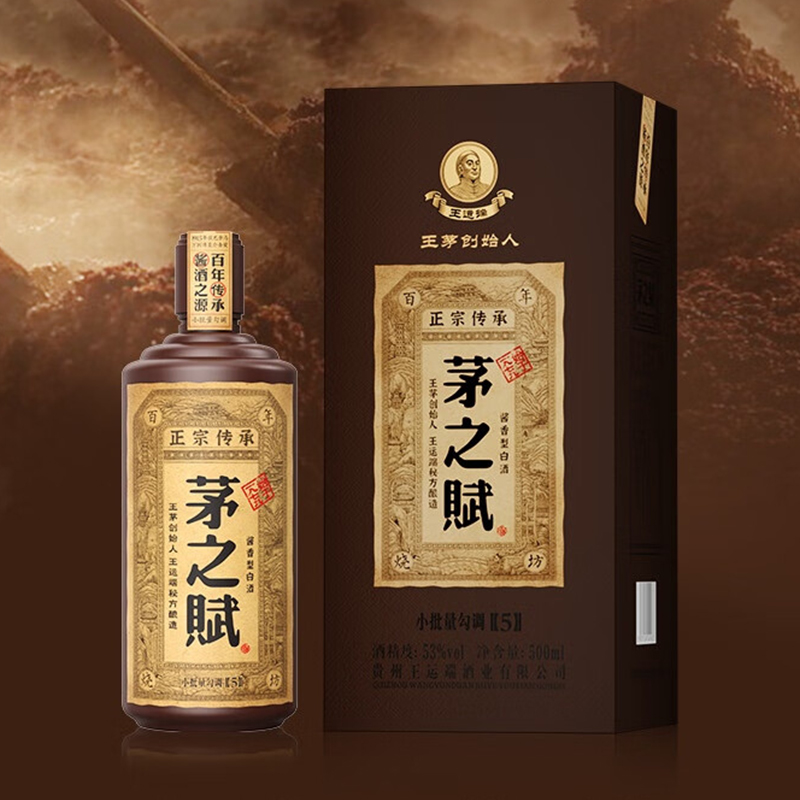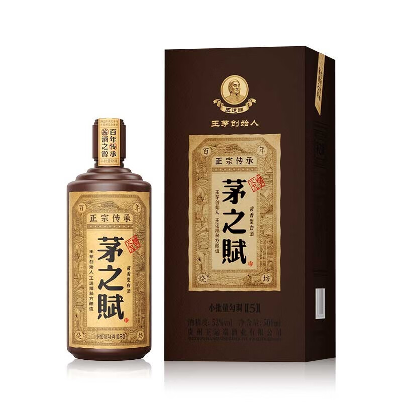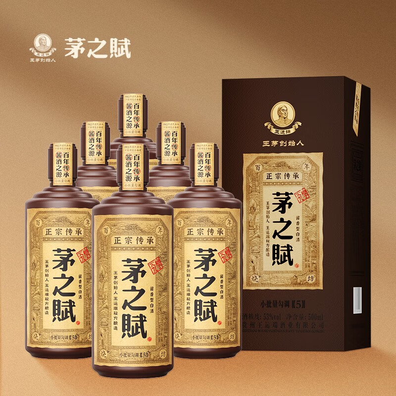 贵州老字号 茅之赋 五年 53度 酱香型白酒 纯粮酿造 500ml*6瓶 整箱