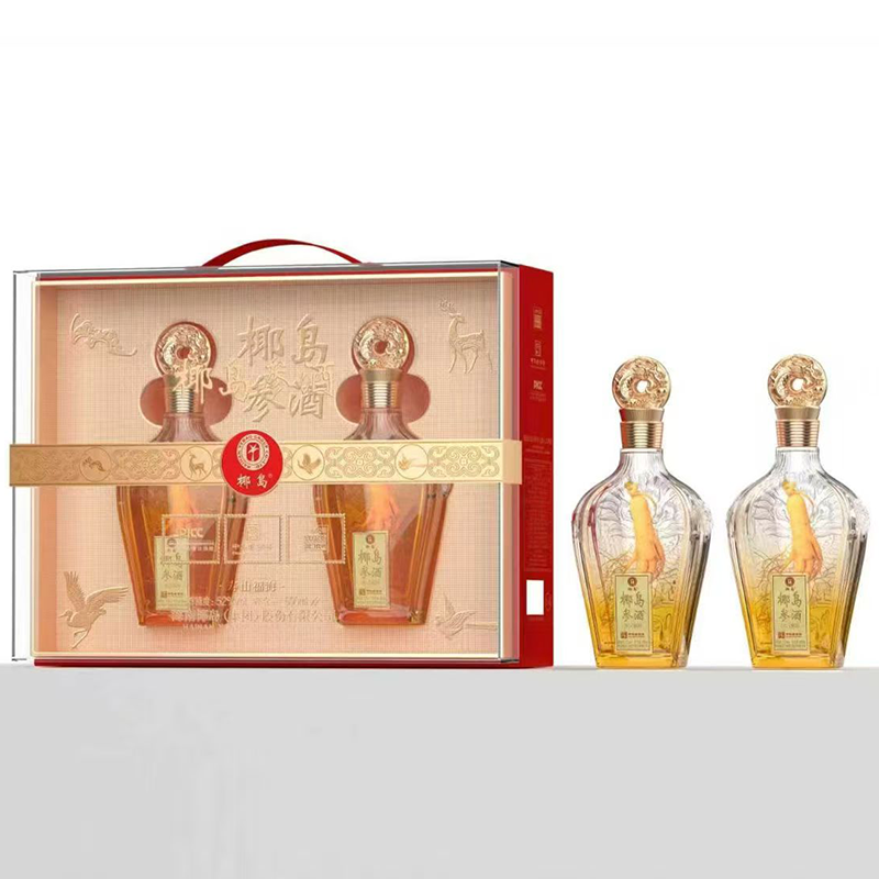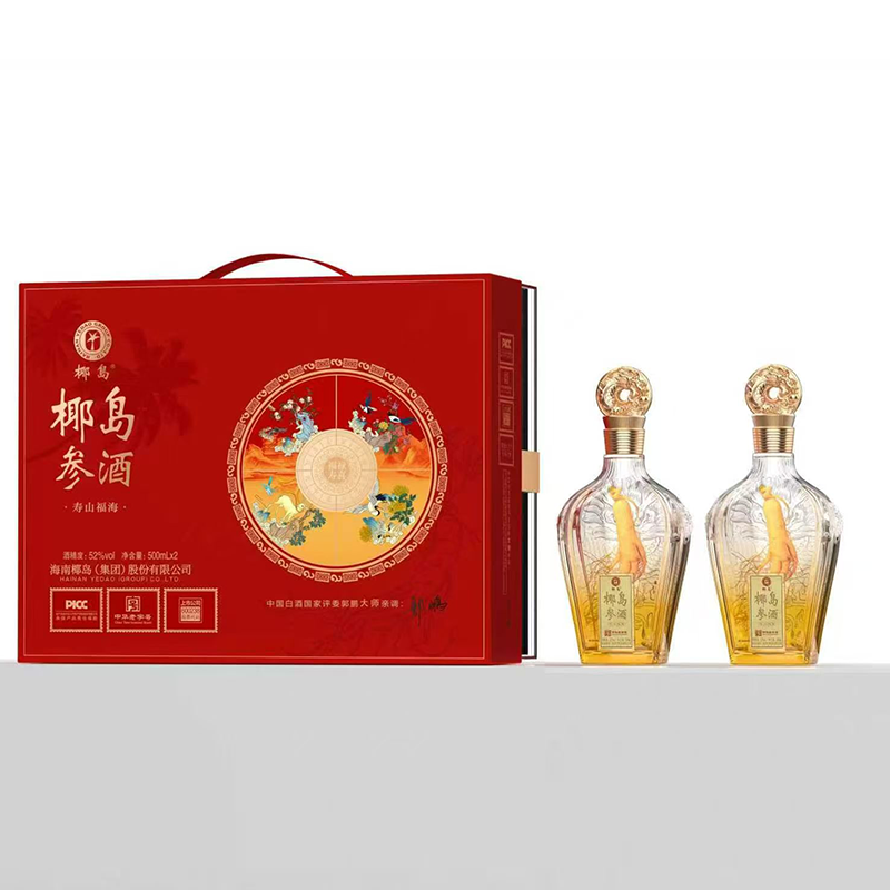 海南椰岛(集团)股份出品 椰岛参酒 寿山福海 中国红 52度 人参入酿 至味无双 琼浆玉液 馈君安康 500ml*2瓶*3盒 整箱装