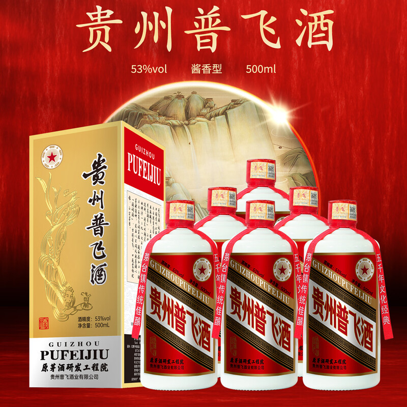 贵州普飞酒 卡盒 53度 酱香型白酒 纯粮白酒 宴请送礼 500m*6瓶 整箱装