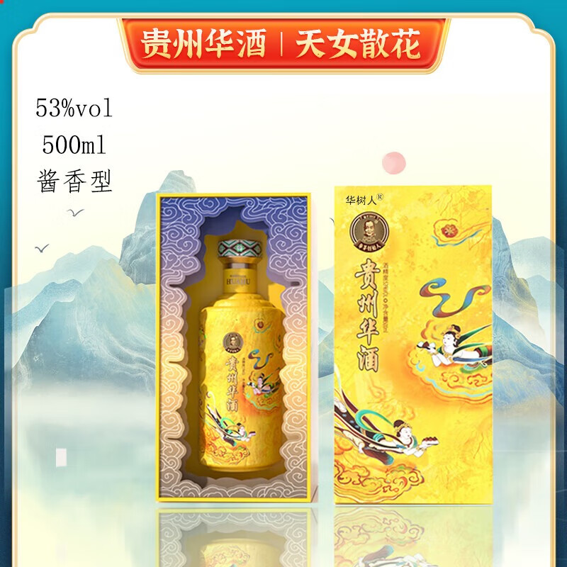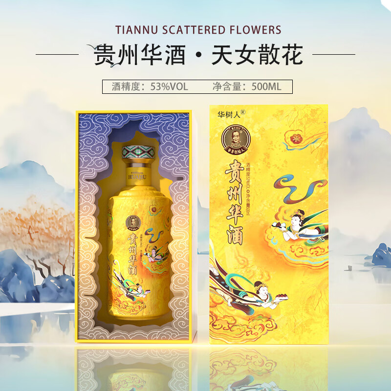 华树人 贵州华酒 天女散花 53度 酱香型 收藏级礼盒装 粮食酒 自饮送礼 500ml* 2瓶 整箱