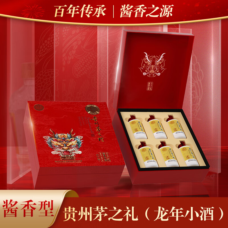 华树人贵州茅之礼 龙年小酒 53度 酱香型白酒 125mL*6瓶 整箱装