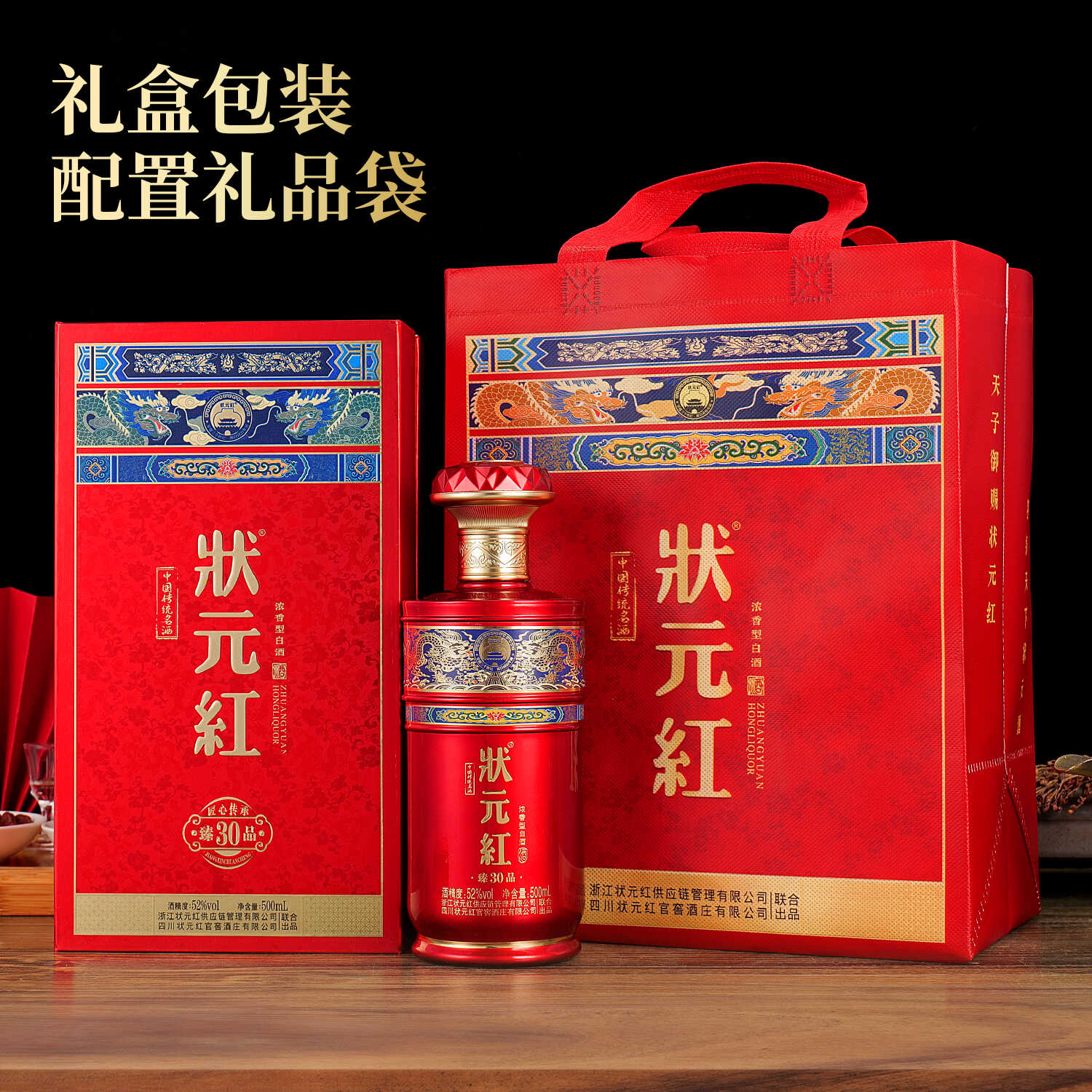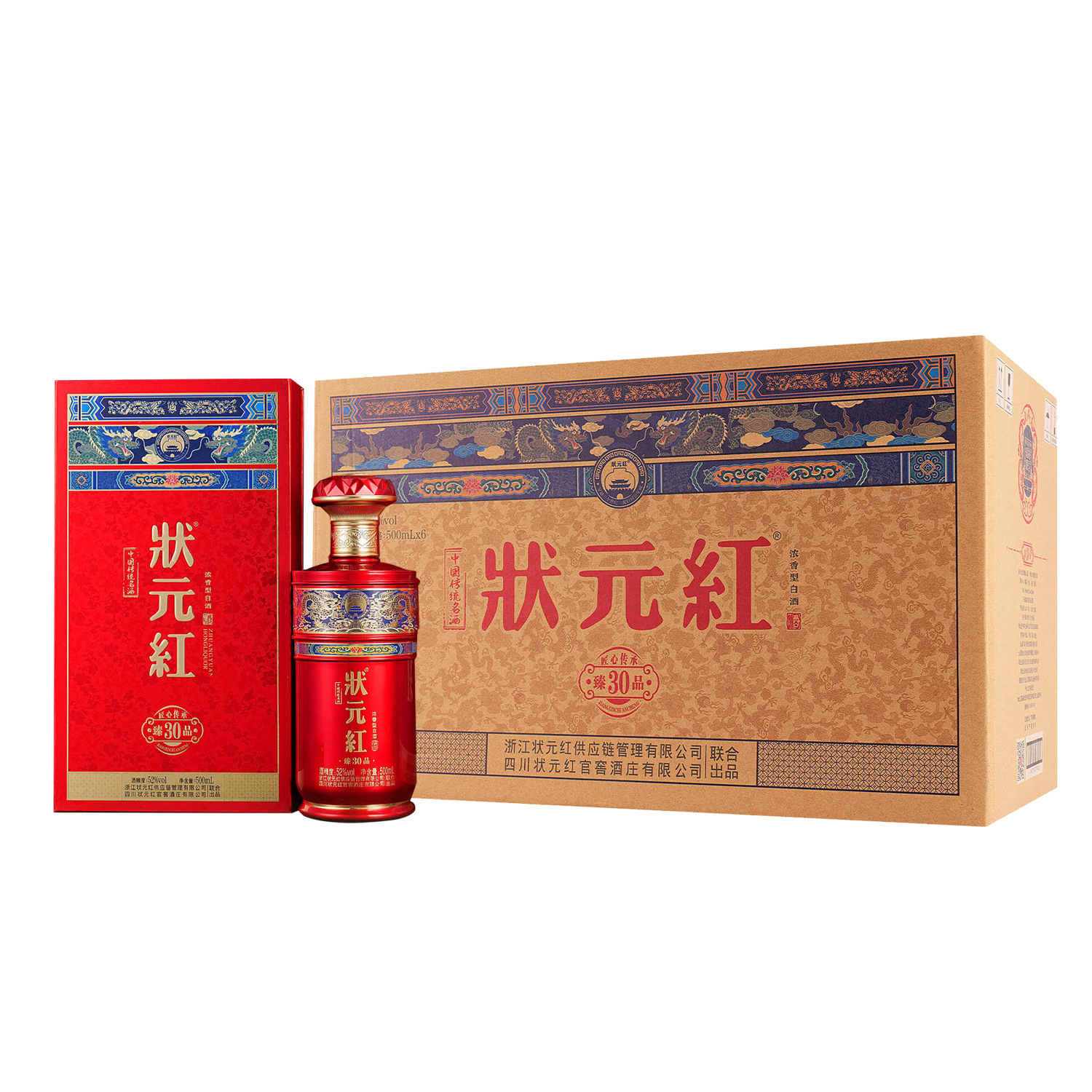 状元红臻品30 52度 浓香型白酒 纯粮食酒正宗原浆 500ml*6瓶 整箱