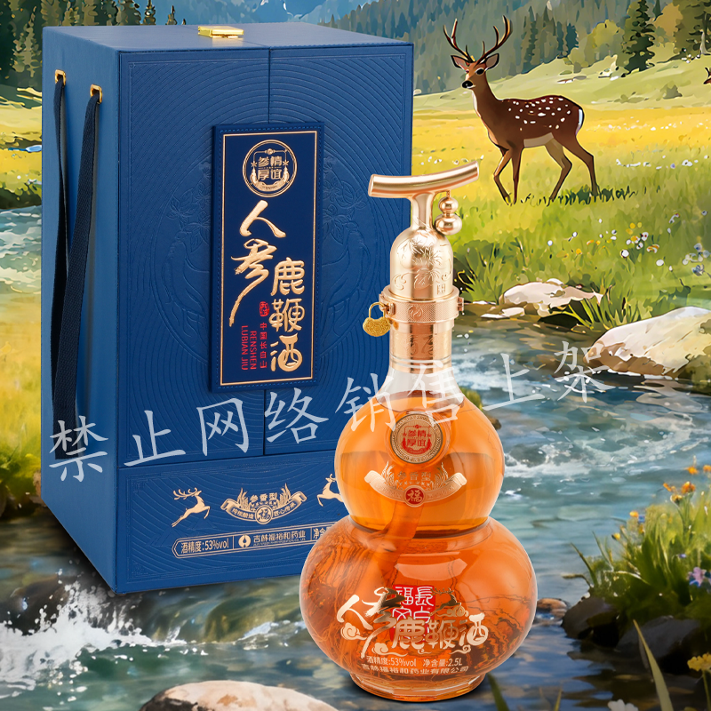 人参鹿鞭酒蓝色 禁止网络销售上架 53度 养生酒 过节送礼佳品 2500ml*2瓶 礼盒装