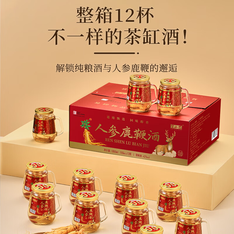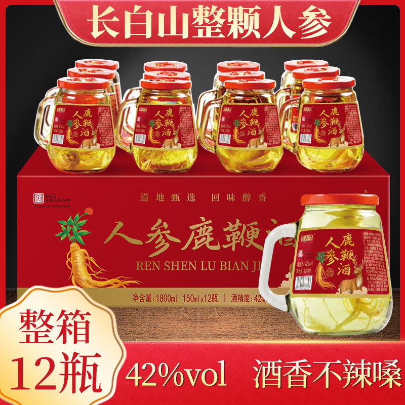 半山农 人参鹿鞭酒 42度 枸杞鹿鞭鹿茸酒 补品 150ml*12瓶 整箱装