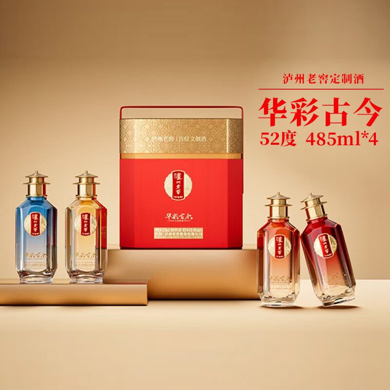 泸州老窖定制酒华彩古今 古颂四禧 礼盒装 52度 浓香型白酒 收藏送礼 485ml*4瓶(盒)