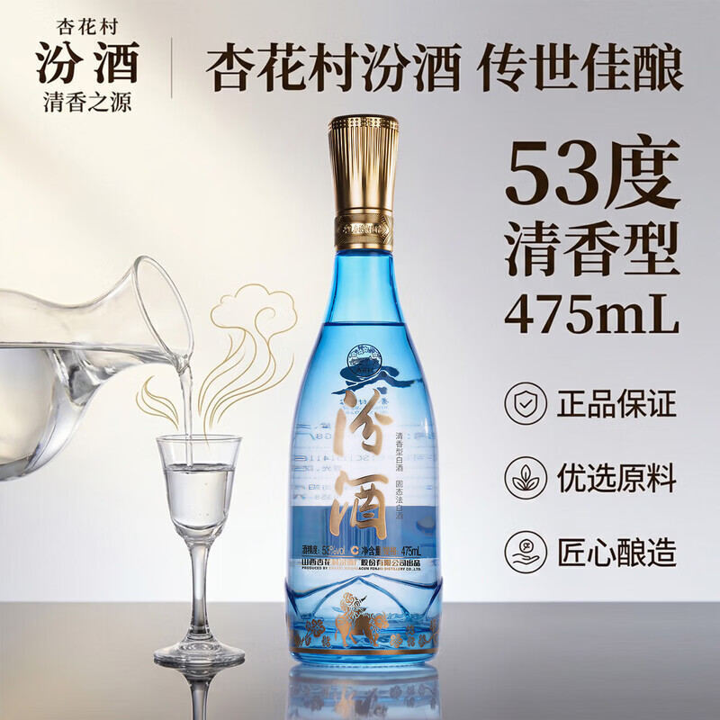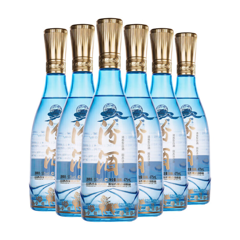 汾酒山西杏花村汾酒 牧童水晶汾酒 53度 清香型白酒 口粮酒 475mL*6瓶 整箱装