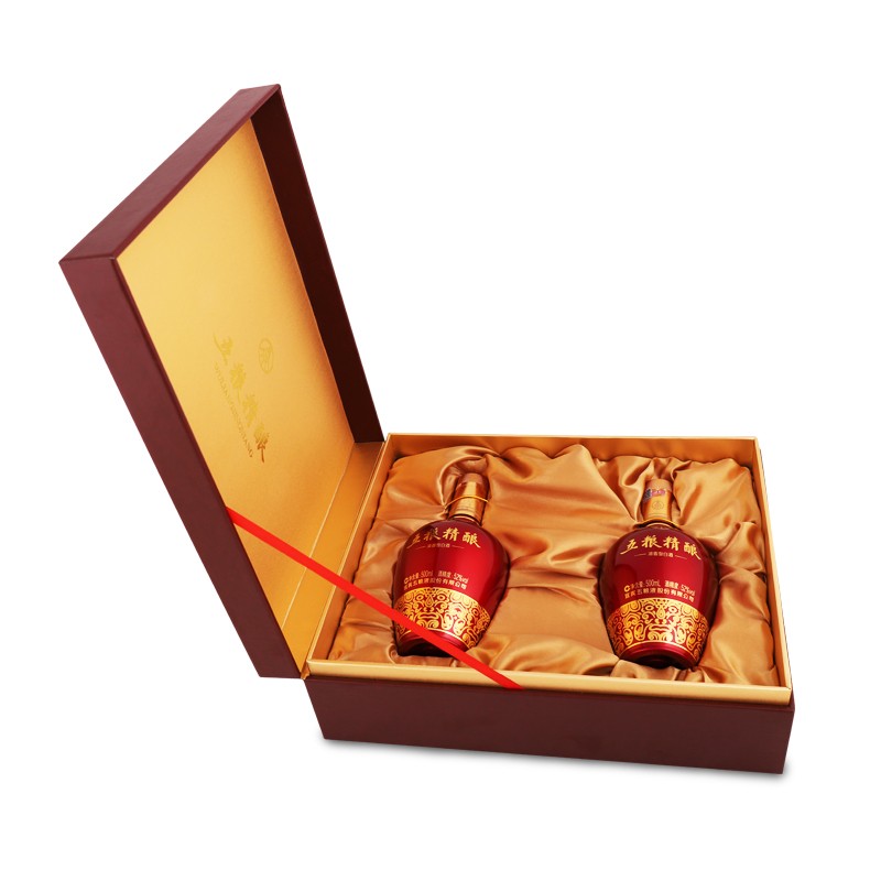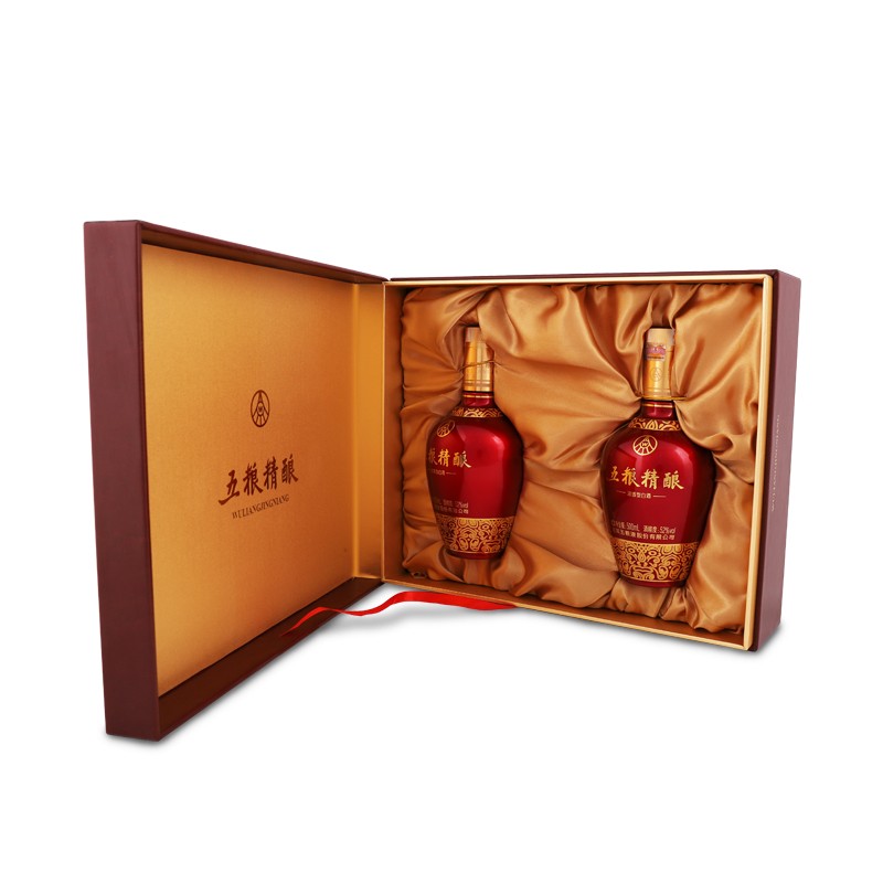 五粮液股份公司出品 五粮精酿 浓香型白酒 52度500ml*2瓶 礼盒装(印花中国红皮盒装 白酒礼盒)